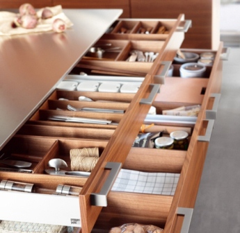 Popular components include pull-out trashcans and drawers, drawer inserts and organizers, built-in spice racks and appliance garages. And using a rotating or swiveling mechanism, a number of solutions to maximize use of corner cabinet space are available. Additional storage can be beautifully designed to compliment your cabinetry from built in wine racks and wine glass holders to plate holders.