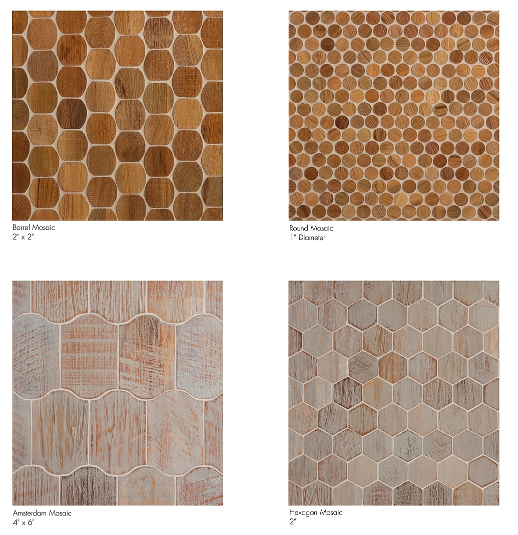 AnTeak from Walker Zanger brings design history to life in the form of reclaimed teakwood tiles inspired by classic European, early 20th century and mid-century modern designs.