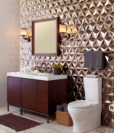 One might compare selecting tile to accessorizing an outfit, an opportunity to express yourself visually. Consider it in terms of a little black dress or tailored suit. Does your personal taste call for a classic strand of pearls or a bold statement necklace? Would you choose a necktie in a loud color and flashy pattern, or would you take a more conservative approach? The same can be considered when selecting tile for your kitchen or bath. You might opt for a subtle design to quietly compliment surrounding cabinetry and architecture like the softly colored Tuileries collection from Walker Zanger. If you’re in pursuit of a more dramatic look, you will be in awe of Ann Sacks’ Ogassian collection. Whatever your taste, we’ve assembled a short list of on-trend tiles in geometric patterns and warm wood grains.